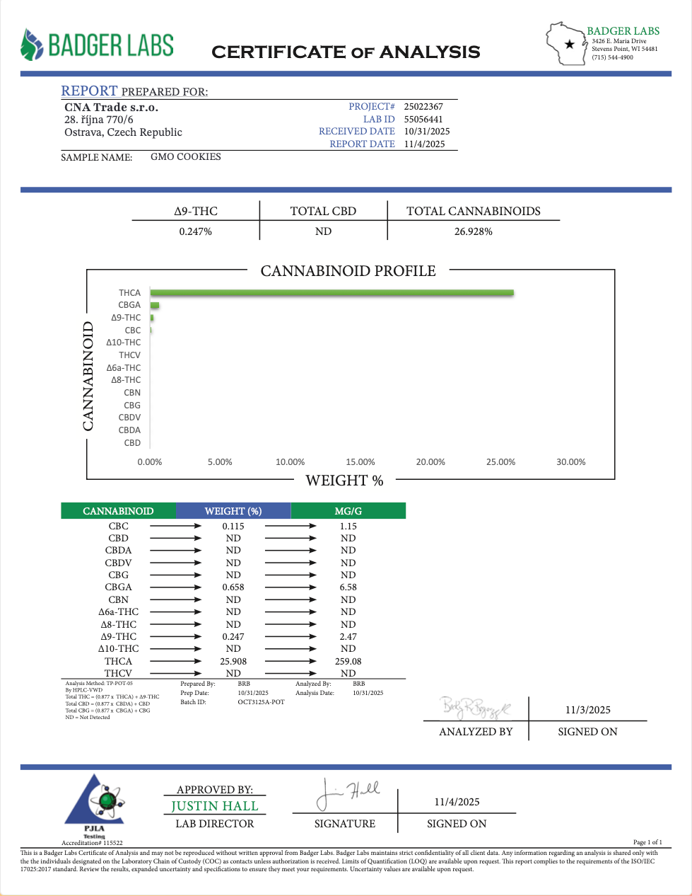 Ihre Bestellung enthält Produkte mit THC-A. Sie bestätigen, dass Sie allein für die Verwendung oder Verarbeitung von THC-A (z. B. Erhitzen, Decarboxylierung usw.) verantwortlich sind. Sie verpflichten sich, die in Ihrem Bestimmungsland geltenden Gesetze einzuhalten. Das von uns verkaufte Produkt entspricht der europäischen Gesetzgebung, d. h., es enthält weniger als 0,3 % THC.